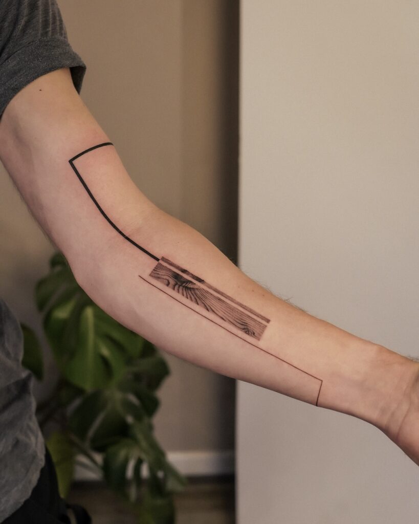 With clean lines framing a woodgrain-inspired detail, this tattoo captures the balance between nature and structure. It reflects intentional living—quiet, grounded, and deeply present within the flow of time.